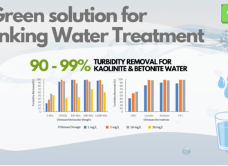 The effectiveness of chitosan, a biopolymer derived from crustacean, was evaluated in reducing the turbidity of drinking water through flocculation. In this study, Chitosan with molecular weight ranges in 50 – 1000 kDa effectively reduced turbidity by 90-99% in water containing bentonite and kaolinite clay. Optimal results are achieved at low dosages (1-3 mg/L) making […]
