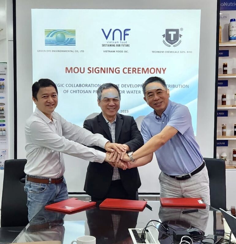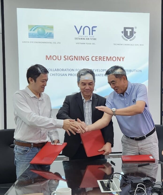 🤝 With our commitment and relentless effort, we are happy to share that VNF signed a Memorandum of Understanding with Techkem Chemicals and Green Eye Environmental on THE DEVELOPMENT & DISTRIBUTION OF CHITOSAN PRODUCTS FOR WATER TREATMENT.